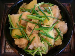 “ぼんじりとジャガイモと白マイタケの煮物”。