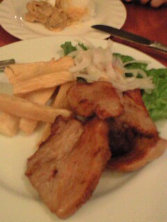 から、メインの料理の付け合せ(ものすっごく太くて大きな