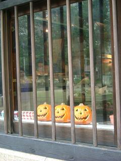 本物のカボチャで作られたジャック・オ・ランタン君達、ハロウィン当日の